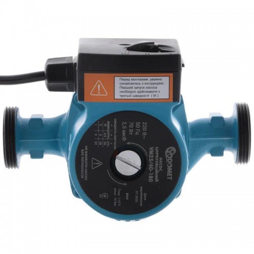 Циркуляційний насос Vodomet працює від електродвигуна, який підключається до однофазної мережі. Насос має три регульовані швидкості. Цей насос можна встановлювати як вертикально, так і горизонтально. При встановленні циркуляційного насоса не забудьте встановити запірні клапани з обох сторін. Це спростить демонтаж приладу у разі обслуговування або непередбачених обставин, і не потрібно буде спускати воду зі всієї системи. Комплектується без монтажних гаєк, дріт з вилкою в комплекті.