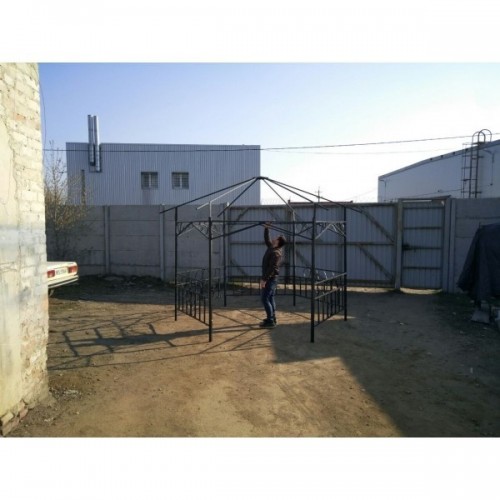 Максимальна жорсткість виробу досягається за рахунок застосування профільних труб з великим запасом міцності перетином. Використовуючи цей технологічний підхід було досягнуто максимальної міцності і жорсткості всієї конструкції. При всіх цих перевагах альтанка має легку вагу, що дозволяє її легко зібрати і розібрати в разі потреби.