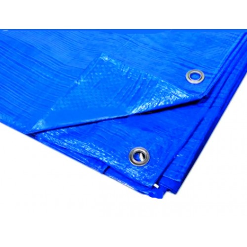 Тент представлений у синьому кольорі. Подвійна клейова смужка посилює края тента, а металеві люверси по периметру дозволяють використовувати шнур або мотузку для закріплення.