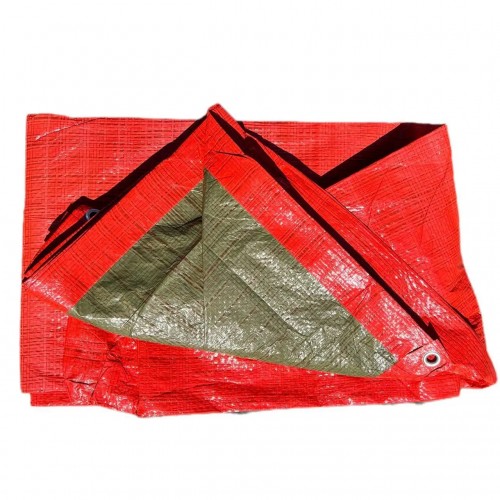 Тент представлений у зелено/померанчовому кольорі. Подвійна клейова смужка посилює края тента, а металеві люверси по периметру дозволяють використовувати шнур або мотузку для закріплення.